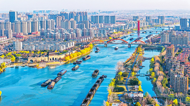通过开展复苏行动,断流百年之久的京杭大运河已连续4年实现全线水流贯通,对沿岸经济社会发展起到了极大推动作用。图为2025年3月18日,京杭大运河江苏省宿迁市宿豫区段,满载货物的船舶有序行驶在航道上,水上运输呈现一派繁忙的景象。 人民图片 陈红/摄