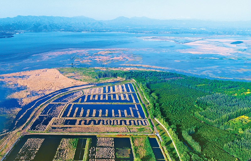 近年来,水利部会同京津冀晋等流域各地,扎实推进永定河系统治理,积极探索复苏河湖生态环境新模式。经过多年探索实践和各方协同配合,永定河再现生机活力,生态面貌焕然一新。图为2025年6月2日,以永定河为主要水流的官厅水库国家湿地公园美景如画。 人民图片 孙慧军/摄